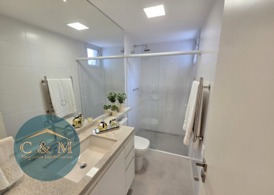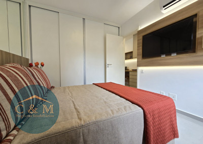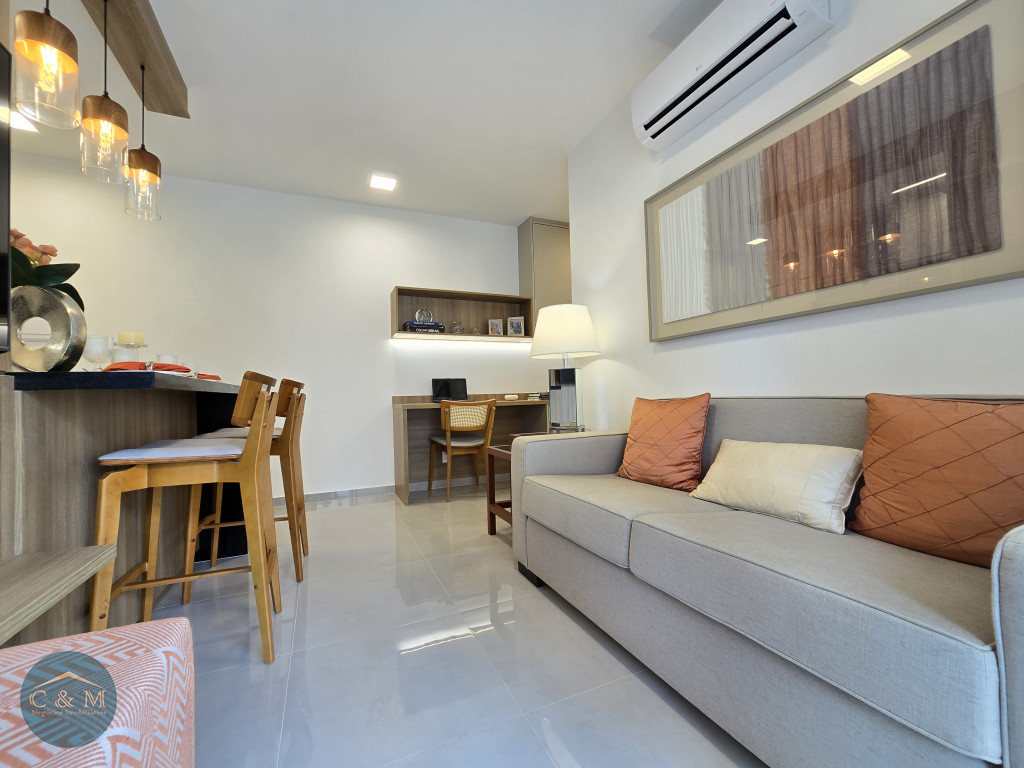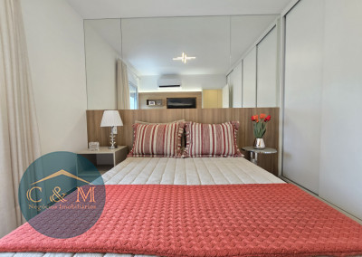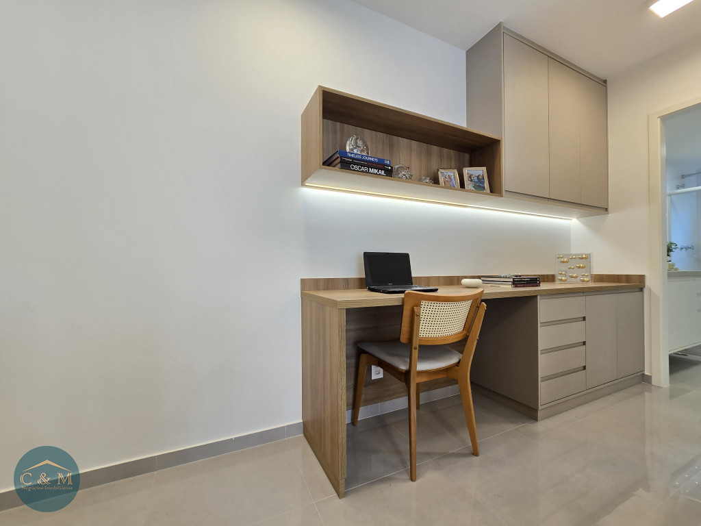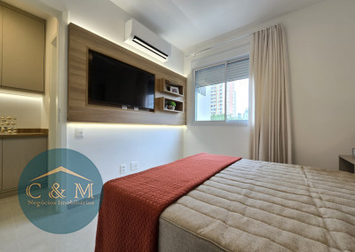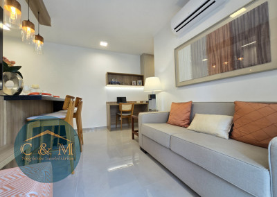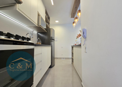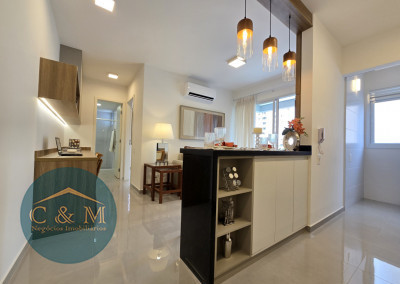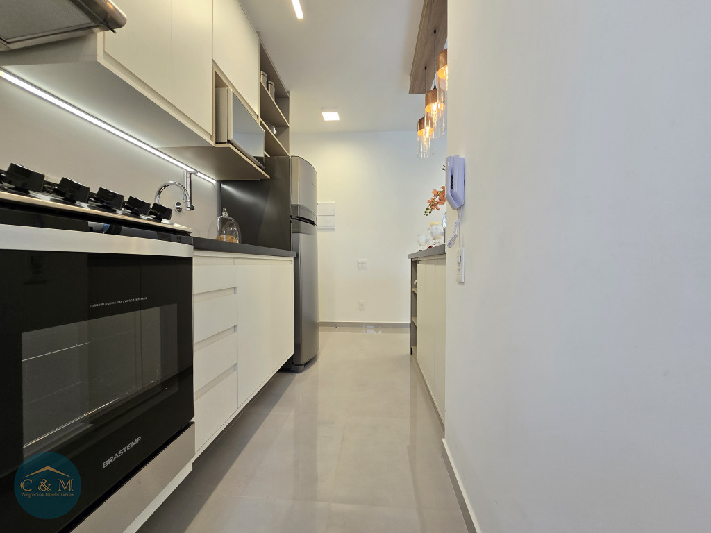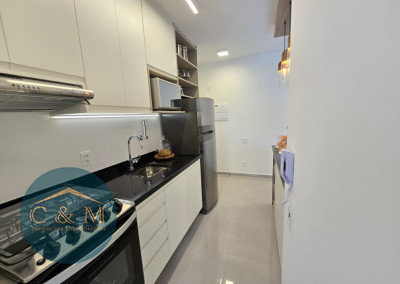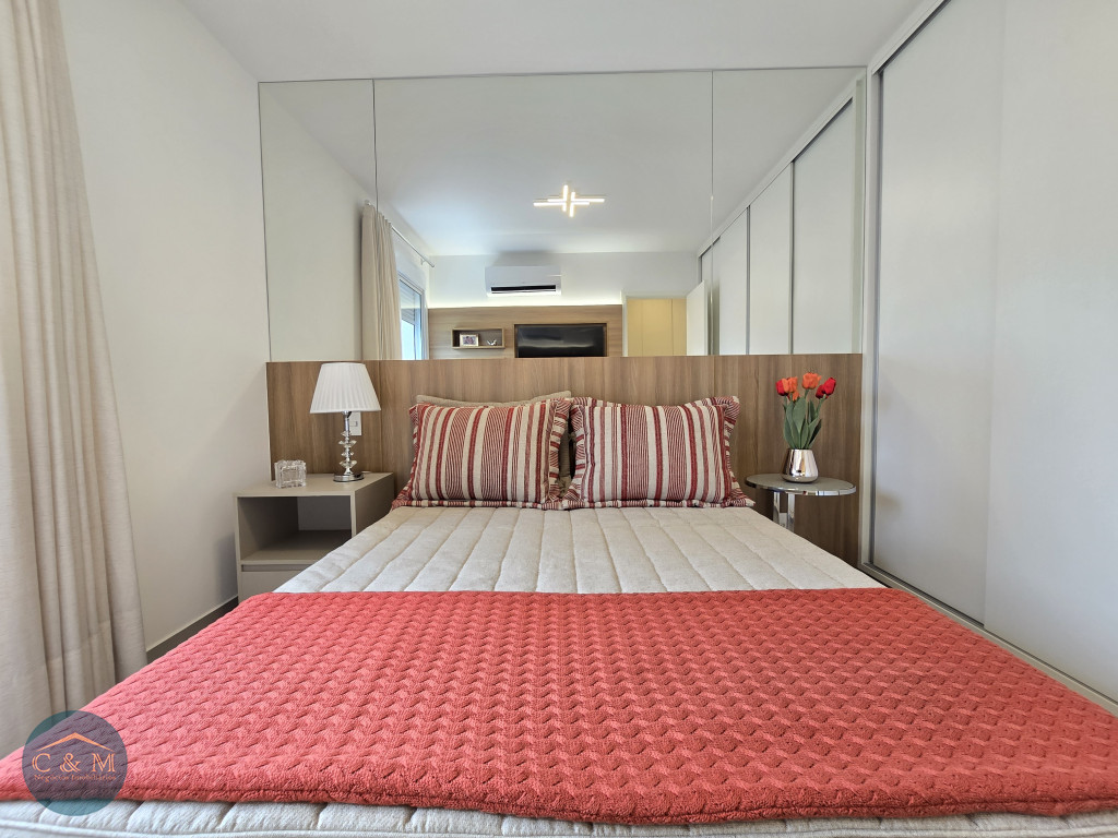 Apartamento de 45m² distribuído em 1 dormitório, 1 banheiro social, sala com varanda, cozinha americana com bancada em granito, área de serviço e área técnica para condensadora, 1 vaga de garagem (podendo optar por 2 vagas). Prédio novo.