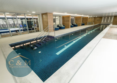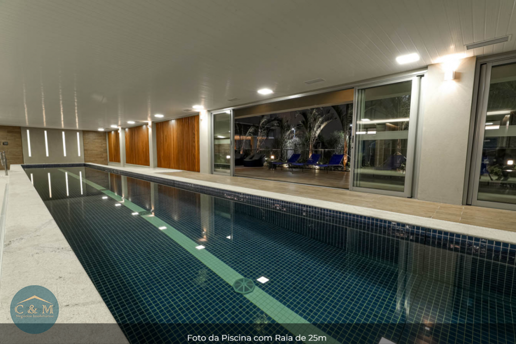 Lazer conta com Praça de festas, Piscina climatizada com raia de 25 metros, Solarium, Piscina infantil, Sala de reuniões, Quadra recreativa, Salão de jogos, Sala de massagem, Brinquedoteca, Espaço Personal, Churrasqueira, Salão de festas, Academia, Hall de entrada elegante, Sky bar, Bicicletário, Playground tudo decorado com muito bom gosto