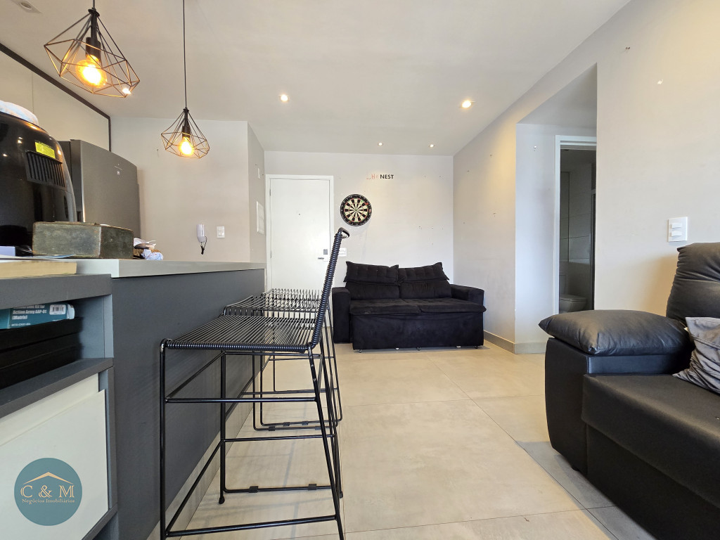 Apartamento a venda de 67m² distribuídos em 2 dormitórios sendo 1 suíte, sala 2 ambientes com varanda integrada e jacuzzi com vista espetacular. Cozinha americana dando a sensação de amplitude aos ambientes, área de serviço. 1 vaga de garagem e depósito. Persianas de enrolar e armários planejados.