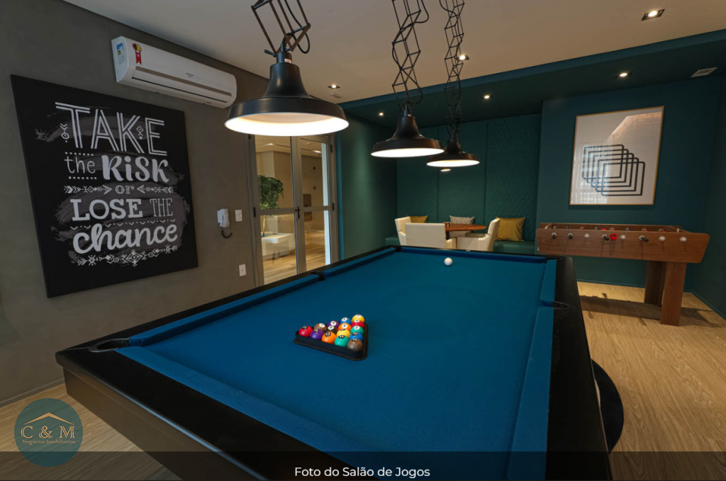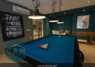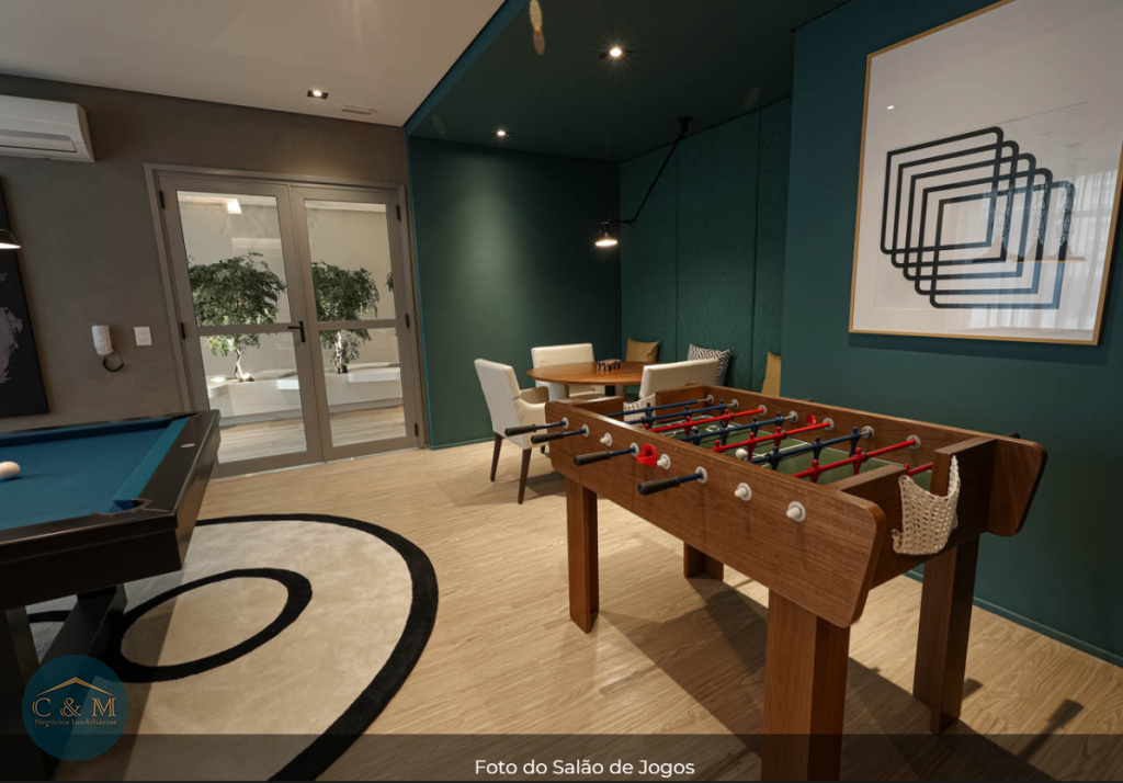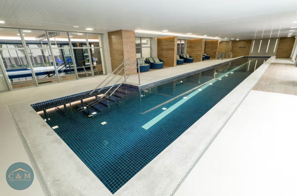 Lazer conta com Praça de festas, Piscina climatizada com raia de 25 metros, Solarium, Piscina infantil, Sala de reuniões, Quadra recreativa, Salão de jogos, Sala de massagem, Brinquedoteca, Espaço Personal, Churrasqueira, Salão de festas, Academia, Hall de entrada elegante, Sky bar, Bicicletário, Playground tudo decorado com muito bom gosto