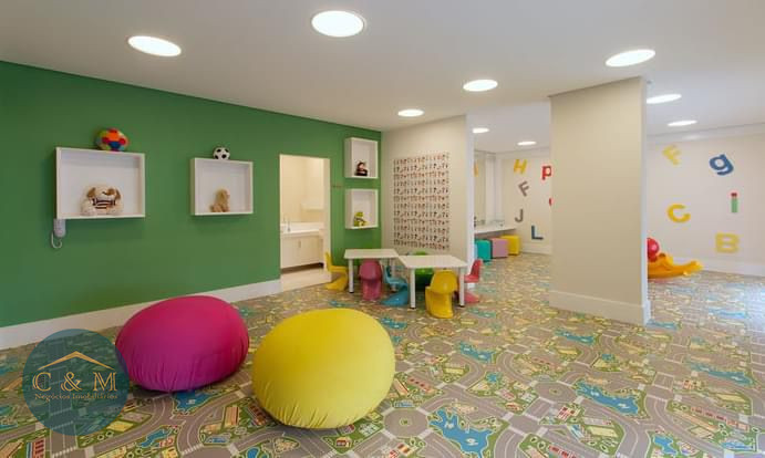 Lazer de clube com piscina adulto e infantil, 3 salões de festas (adulto, infantil e gourmet), academia moderna, playground, brinquedoteca, área de convívio muito arborizada, quadra poliesportiva com churrasqueira, salão de jogos adulto e juvenil, spa com jacuzzi e sauna, bosque privativo.