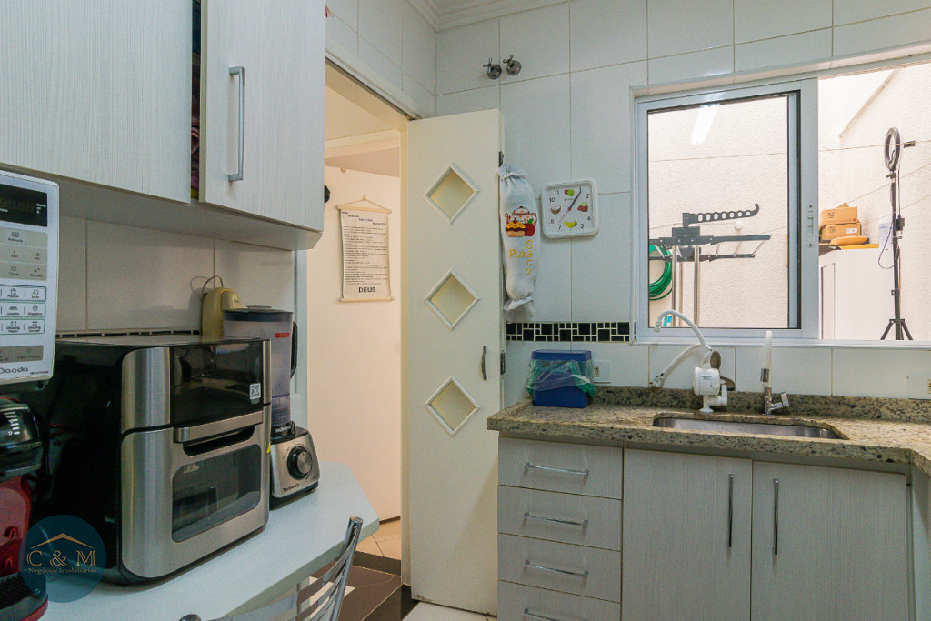 Sobrado de condomínio 72m² à venda distribuídos em 3 dormitórios sendo 1 suíte com varanda, sala 2 ambientes, lavabo, cozinha, área de serviço. Possui 2 vagas de garagem, depósito e na área de serviço espaço para churrasqueira.