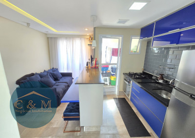 Apartamento 47m² à venda distribuídos em 2 dormitórios, 1 banheiro social, sala com varanda e vista para a Serra da Cantareira, cozinha americana, área de serviço. Repleto de armários, 1 vaga de garagem e depósito. Portaria virtual e mini market.