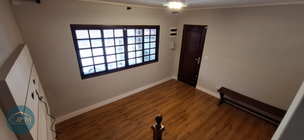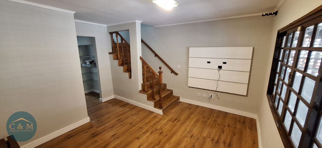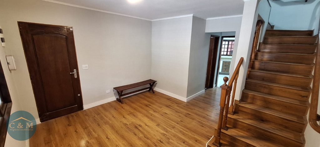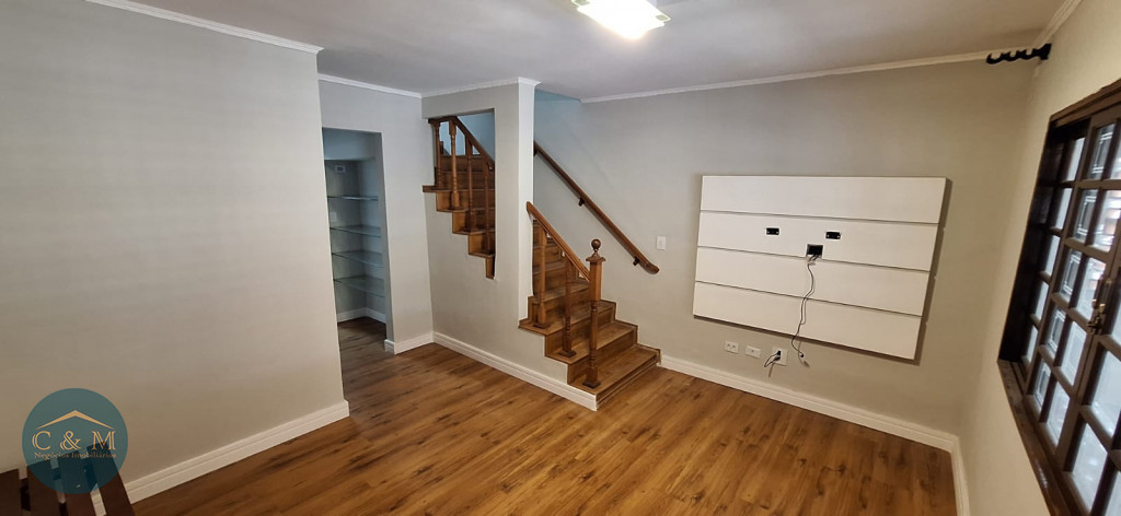 Sobrado de rua de 111m² à venda distribuídos em 2 dormitórios, 2 banheiros idênticos, 1 para os dormitórios e outro na parte de baixo, sala 2 ambientes, cozinha, área de serviço, quintal com churrasqueira, corredor lateral, jardim pequeno de canto, 2 vagas de garagem com portão eletrônico. Repleto de armários.