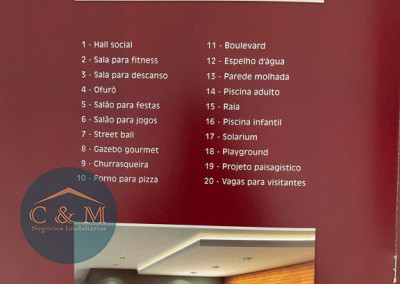 Lazer conta com Academia, Sala de descanso, Ofurô, Salão de festas, Salão de Jogos, Street ball, Gazebo Gourmet, Churrasqueira, Forno para Pizza, Boulevard, Espelho d'água, Parede Molhada, Piscina adulto com raia e infantil, Solarium, Playground, Área de convivência repleta de verde, Vagas para visitantes.