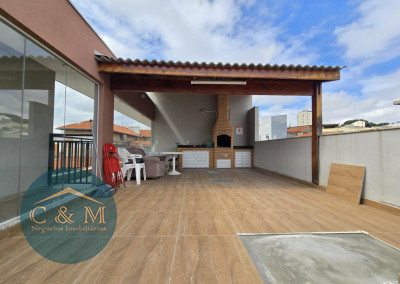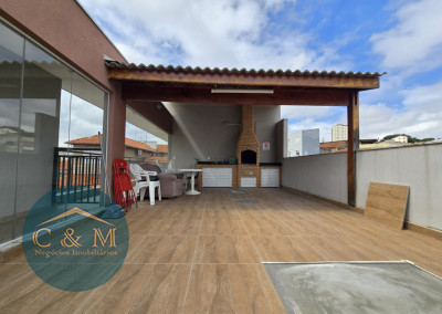 O condomínio conta com elevador, Área gourmet com Churrasqueira no rooftop.