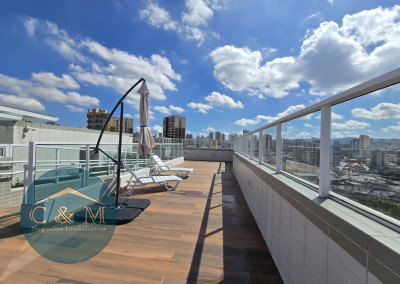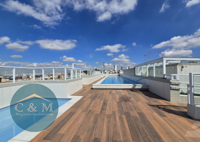 Lazer com solarium, piscina adulto e infantil e deck seco no rooftop, sauna, brinquedoteca, salão de jogos, academia, salão de festas, churrasqueira. Portaria 24 horas, mini market, gerador.