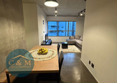 Apartamento no Condomínio MaxHaus Paulista, são 75m² distribuídos em 2 dormitórios sendo 1 suíte, sala 2 ambientes, cozinha, área de serviço, completamente mobiliado, decoração exclusiva. Possui varanda envidraçada, ar condicionado, armários embutidos, cozinha completa, portas, cortinas, TV, Janelas com isolamento acústico, Metais Grohe de garantia vitalícia e conta com 1 vaga de garagem fixa.