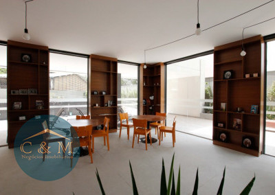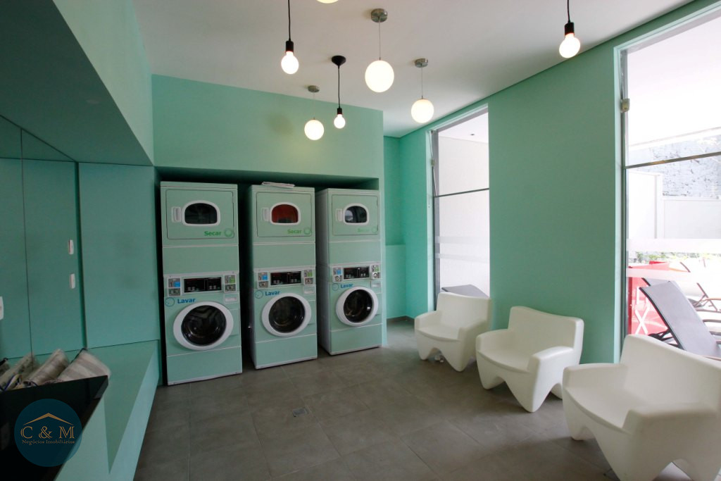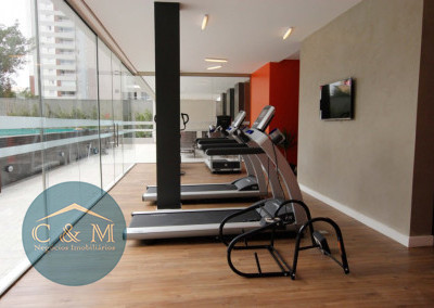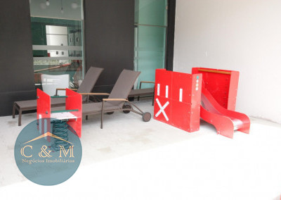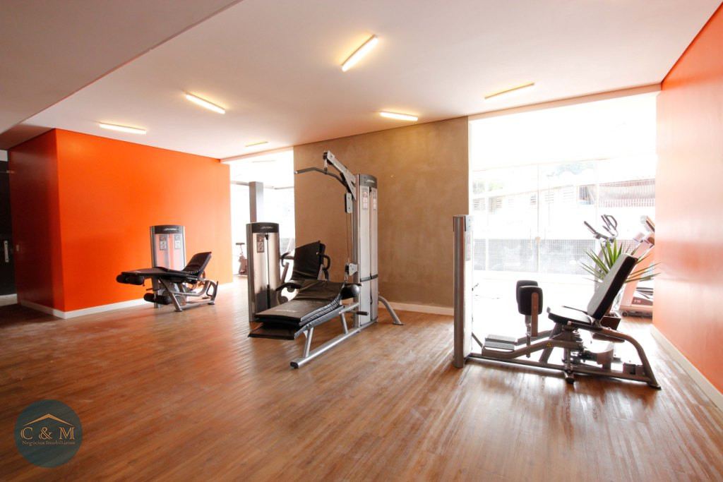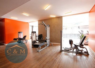 Condomínio com portaria 24 horas, elevador, academia, piscina, salão de festas, playground e lavanderia coletiva.