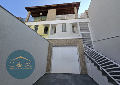 Sobrado de rua 195m² à venda distribuídos em 3 dormitórios sendo 1 suíte com banheira de hidromassagem e varanda, sala 2 ambientes, copa, cozinha, despensa, área de serviço, dormitório e banheiro de apoio para utilizar da maneira que preferir, área gourmet com cobertura abre / fecha, quintal e corredor lateral amplos. Possui 3 vagas de garagem sendo 2 cobertas e 1 descoberta com acesso por escada interna e externa para o sobrado, e portão eletrônico.