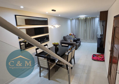 Sobrado à venda na Vila Mazzei de 163m² muito bem distribuídos em 3 dormitórios sendo 1 suíte, sala 2 ambientes, lavabo, cozinha, corredor lateral com acesso a área de serviço, despensa, banheiro de apoio, área gourmet com churrasqueira, bar com adega, mezanino, home office. Possui 2 vagas de garagem cobertas com portão eletrônico.