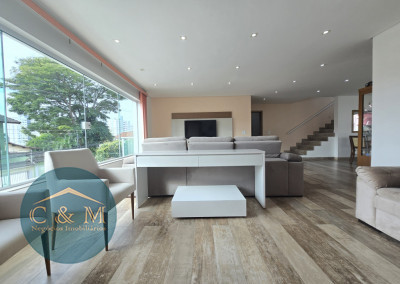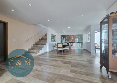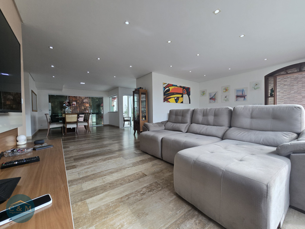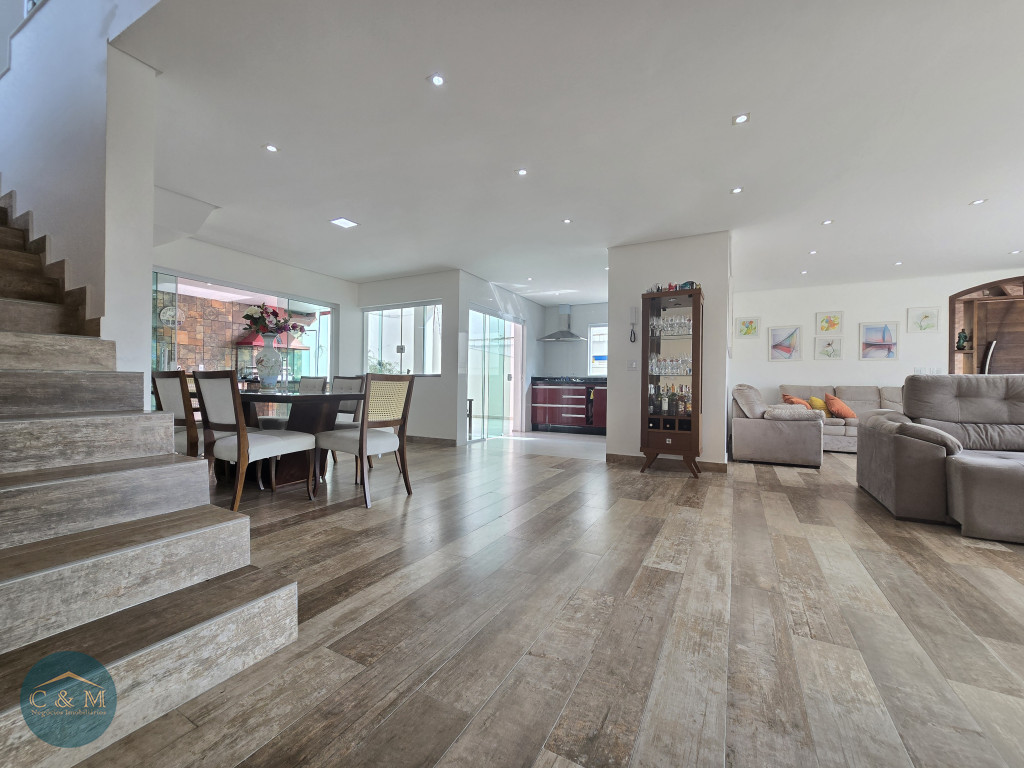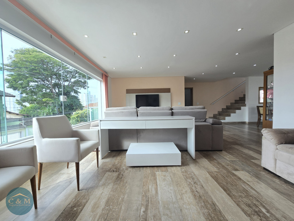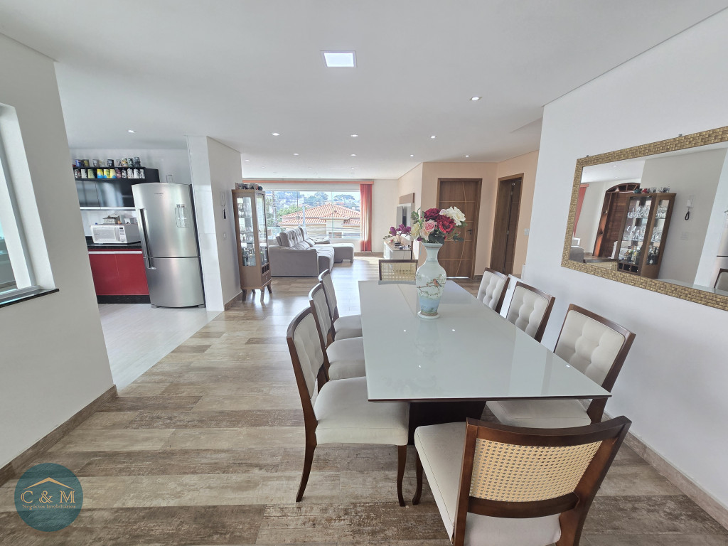Sobrado de rua 320m² à venda distribuídos em Parte superior: 3 suítes amplas sendo 2 com closet, mezanino. Parte inferior: sala espaçosa 3 ambientes (TV, estar e jantar) integrados com uma cozinha moderna e funcional em um único ambiente criando a sensação de amplitude e fluidez, facilitando a interação entre os moradores, escritório/dormitório (usar como preferir) com varanda, banheiro completo, área de serviço, espaço para secagem de roupas, banheiro de apoio, espaço gourmet sofisticado com churrasqueira carvão ideal para receber amigos e familiares para momentos de descontração e lazer, corredor lateral com acesso direto ao espaço gourmet, 4 vagas de garagem com portão eletrônico.