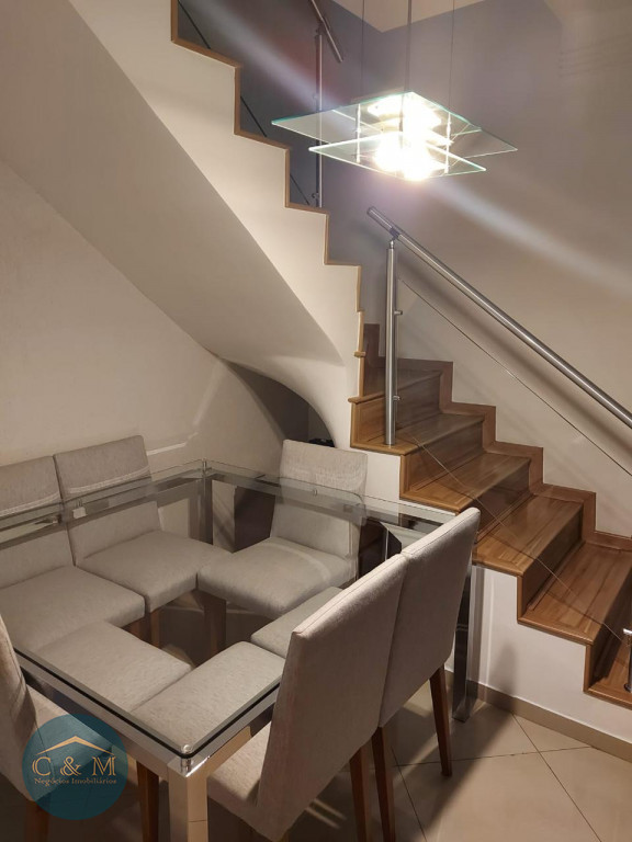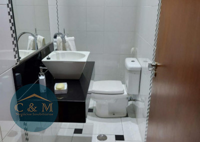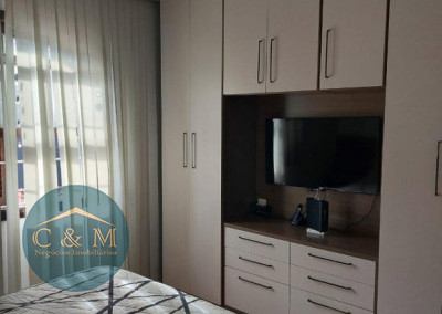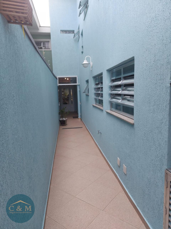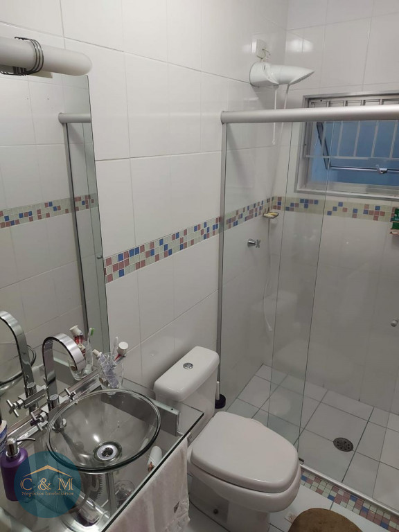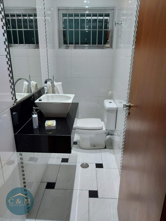 Sobrado de 128m² à venda distribuídos em 3 dormitórios sendo 2 suíte, sala ampla 2 ambientes, lavabo, cozinha, área de serviço, churrasqueira, corredor lateral, 4 vagas de garagem cobertas e portão eletrônico.