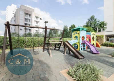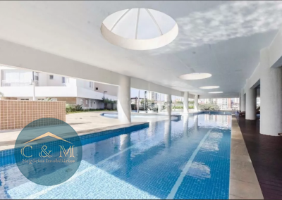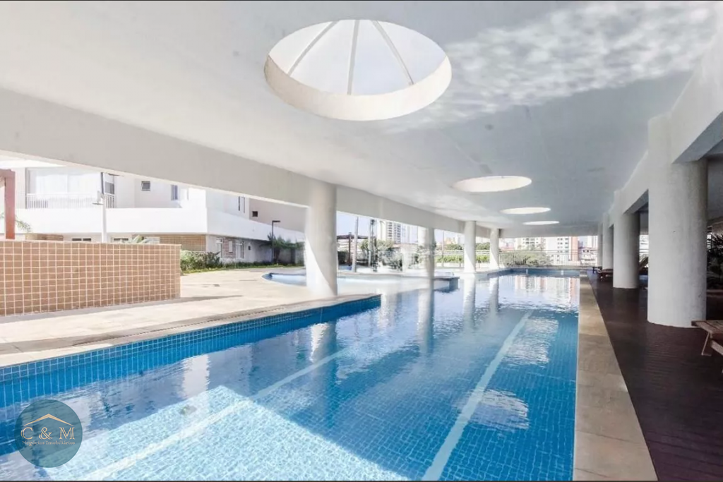 Lazer conta com piscina adulto e infantil aquecida e raia de 25 metros, academia, salão de festas, salão gourmet, salão de jogos, brinquedoteca, playground, três churrasqueiras cobertas e equipadas, quadra poliesportiva, academia ao ar livre, pista de caminhada, espaço pet, garage band, sala de massagem, salão de beleza, sauna, vestiários, mini mercado e gazebos de descanso, área de convivência arborizada.