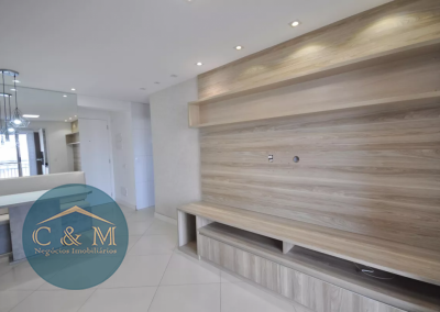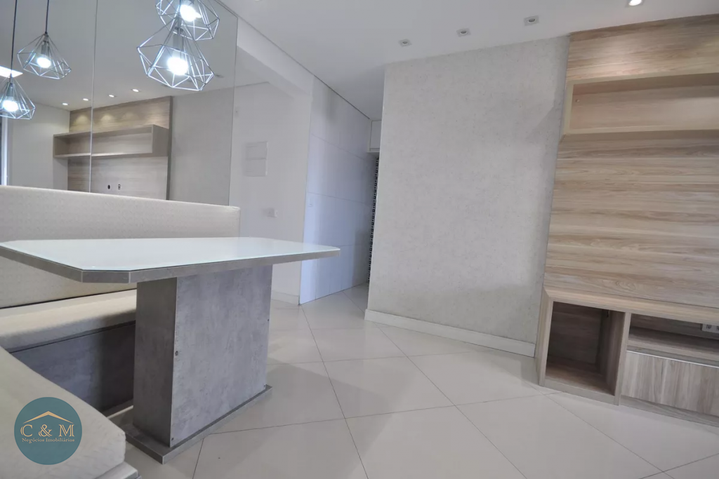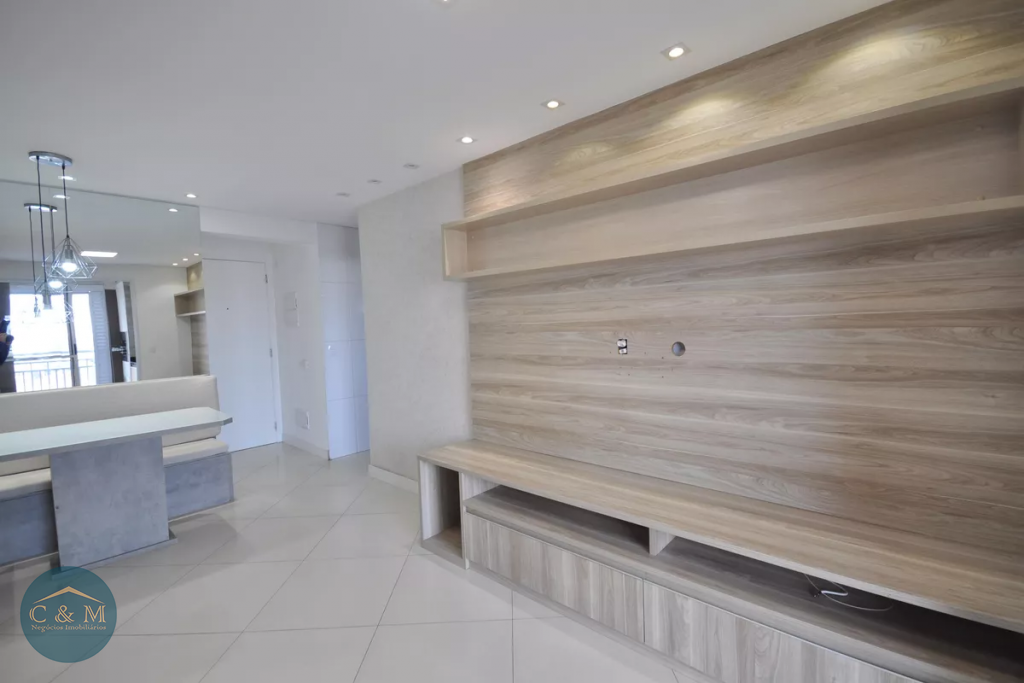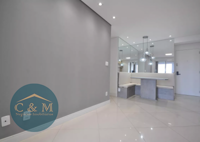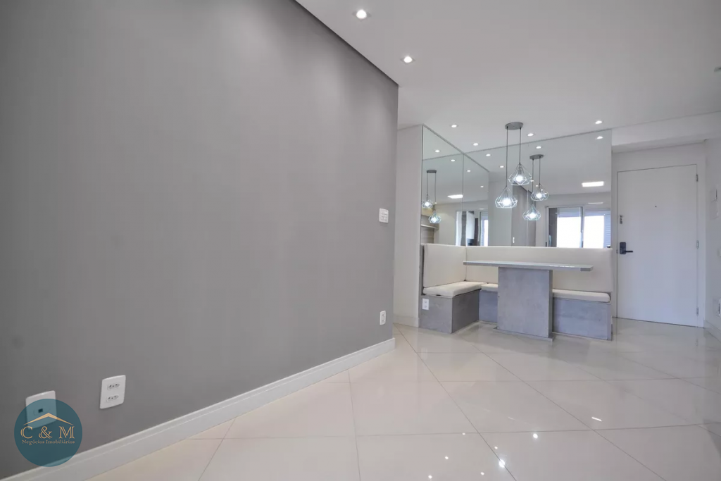 Apartamento impecável de 60m² à venda distribuídos em 2 dormitórios sendo 1 suíte, sala 2 ambientes com varanda gourmet com churrasqueira a gás, frigobar, fechamento em vidro com persianas de enrolar, cozinha planejada com cooktop e forno, área de serviço, conta com 1 vaga de garagem, ventilador de teto, repleto de armários de qualidade, 1 vaga de garagem