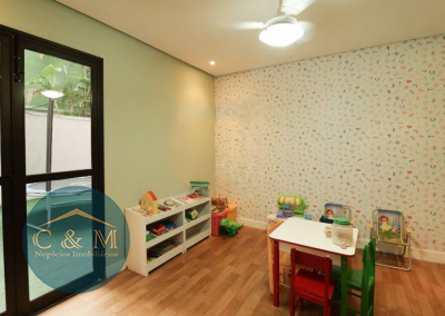 O Condomínio é composto de torre única sendo 2 por andar. Lazer com piscina adulto e infantil, quadra de tênis, quadra de esportes, brinquedoteca, playground, academia, salão de festas, churrasqueira, sauna, salão de jogos, área de convivência com muito verde.