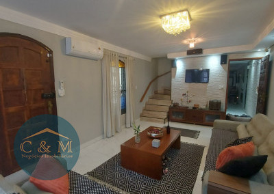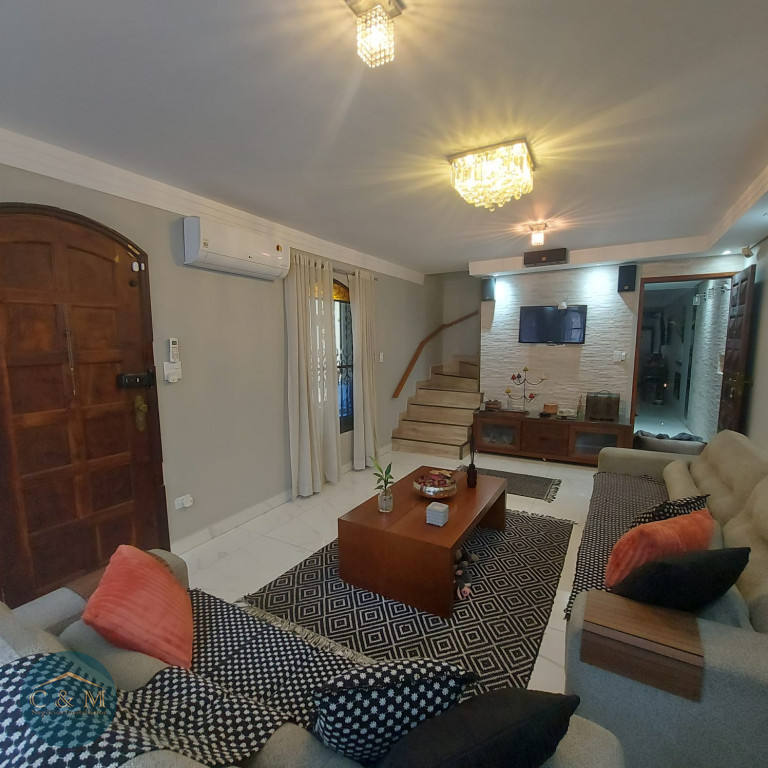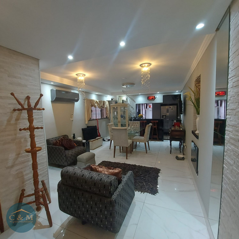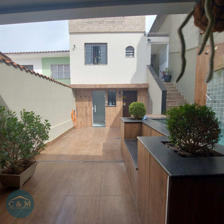 Sobrado de rua 192m² à venda distribuídos em 3 dormitórios sendo 1 suíte com banheira de hidromassagem e varanda, sala 2 ambientes, lavabo, copa, cozinha americana, área de serviço, despensa. Conta com 3 vagas de garagem com portão eletrônico e com acesso por fora ou por escada interna conectando diretamente a garagem ao interior da casa, despensa e banheiro. Na entrada um lindo jardim. Nos fundos área gourmet com churrasqueira carvão, spa aquecido com hidromassagem e cascata, sauna à vapor com ducha, banheiro de apoio, espaço para armazenamento de objetos. Reformado hidráulica e elétrica, piso porcelanato de primeira linha, ar condicionado em todos os ambientes, spots de luz quente e fria e vários detalhes de luzes.