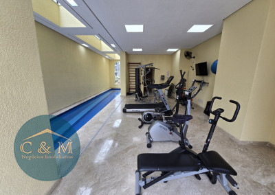 Lazer conta com academia, piscina adulto com raia semiolímpica parcialmente coberta, piscina infantil, sauna seca (chuveiro e banheiro), espaço gourmet coberto com churrasqueira carvão e forno de pizza, salão de festas com cozinha equipada, hall social com pé direito duplo. Portaria virtual, sistema de clausura nos acessos, monitoramento 24 horas.