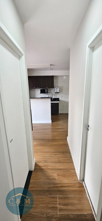 Apartamento 43m² à venda distribuídos em 2 dormitórios, 1 banheiro, sala com varanda integrada com vista livre e sol da manhã, cozinha conceito aberto, área de serviço. Moderno, bem iluminado, arejado e pronto para morar, com móveis e eletrodomésticos. Conta com 1 vaga de garagem.
