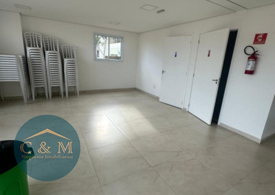 O condomínio é composto por um salão de festas, bicicletário, jardim e portaria eletrônica. São 8 andares sendo 4 apartamentos por andar e 2 elevadores.