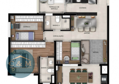Apartamento 83m² impecável à venda distribuídos em 3 dormitórios sendo 1 suíte (1 deles revertido para ampliação da sala, podendo ser revertido), sala 2 ambientes, cozinha, área de serviço, varanda gourmet com churrasqueira carvão com vista linda. Conta com 1 vaga de garagem. Pronto para morar com materiais de primeira linha, 3 ar condicionado (condensadora capacidade para 6), luzes em led, chuveiro à gás, box nos banheiros.