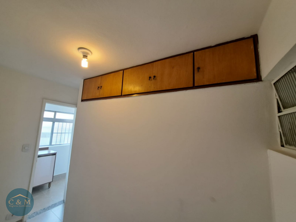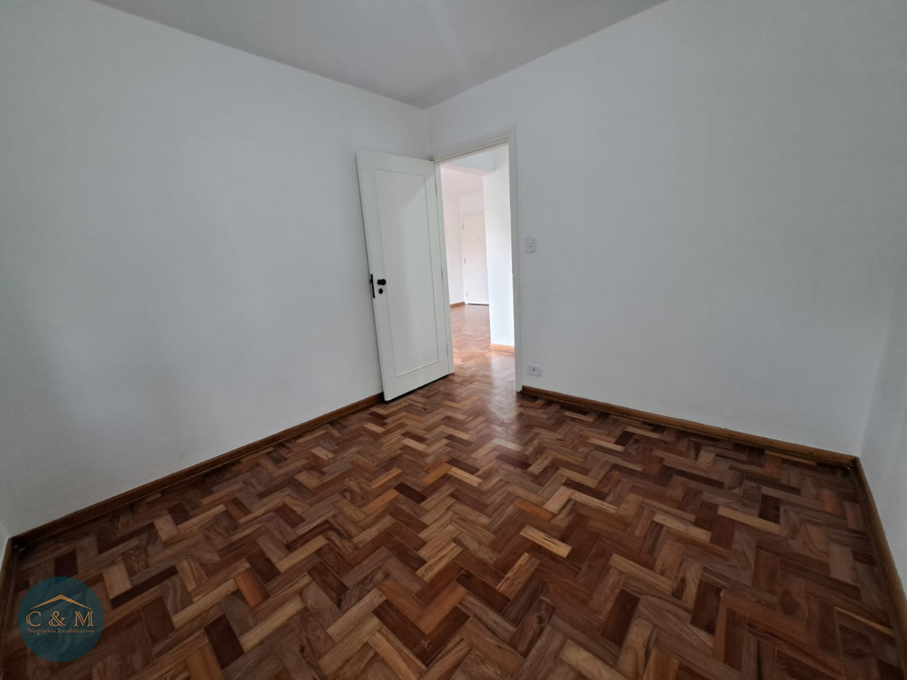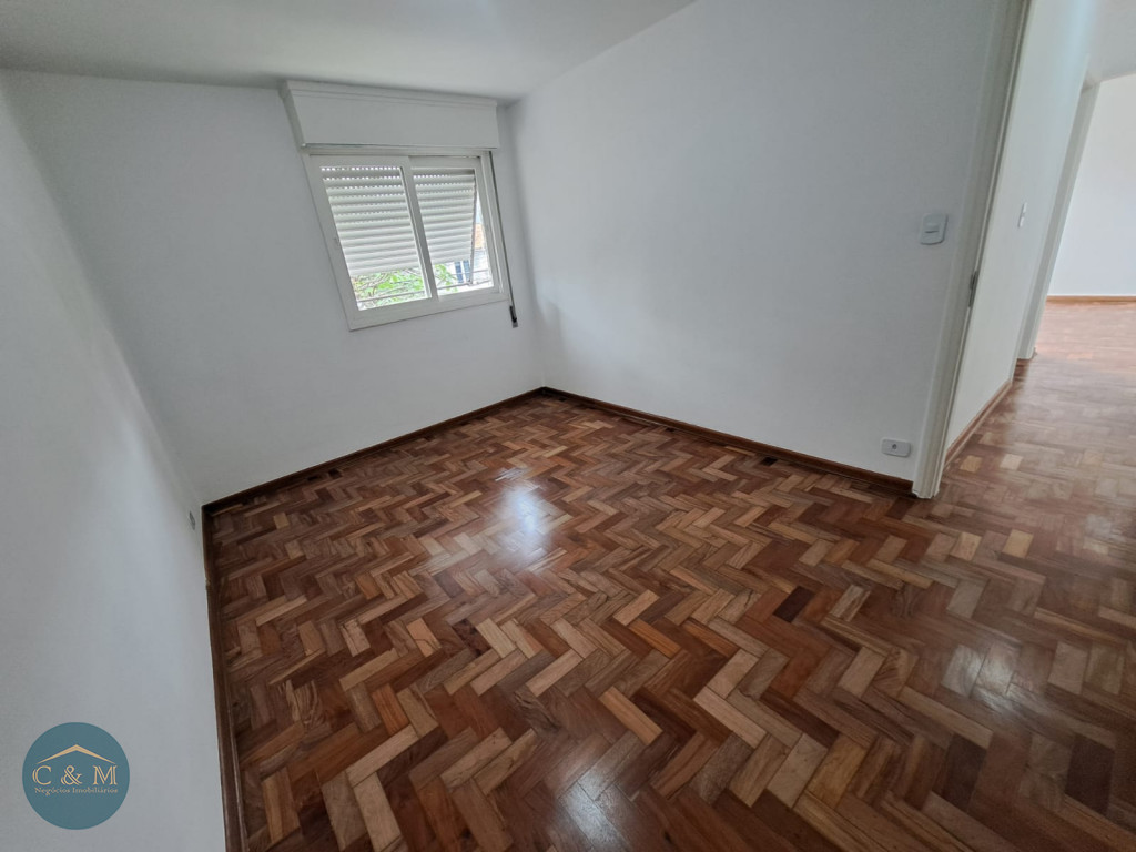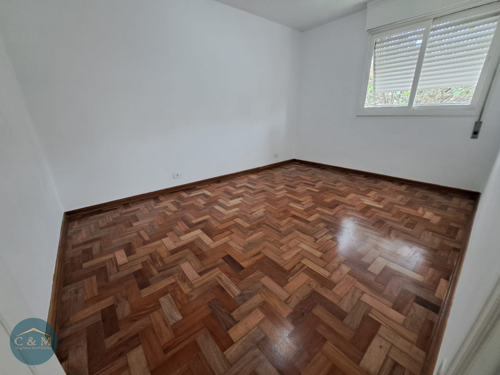 A sala espaçosa com cerca de 15 m², é um dos grandes destaques: possui piso em taco de madeira em ótimo estado de conservação, com brilho e elegância que valorizam o ambiente. A ampla janela garante excelente iluminação natural e ventilação, tornando o espaço ideal para dois ambientes confortáveis.