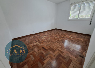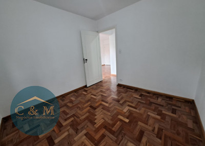 Os dormitórios seguem o mesmo padrão, também com piso em taco de madeira brilhando, bem cuidados e acolhedores.