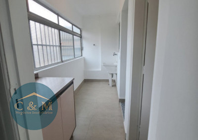 A área de serviço é espaçosa, ventilada e funcional, contando ainda com mais um dormitório e banheiro de apoio.