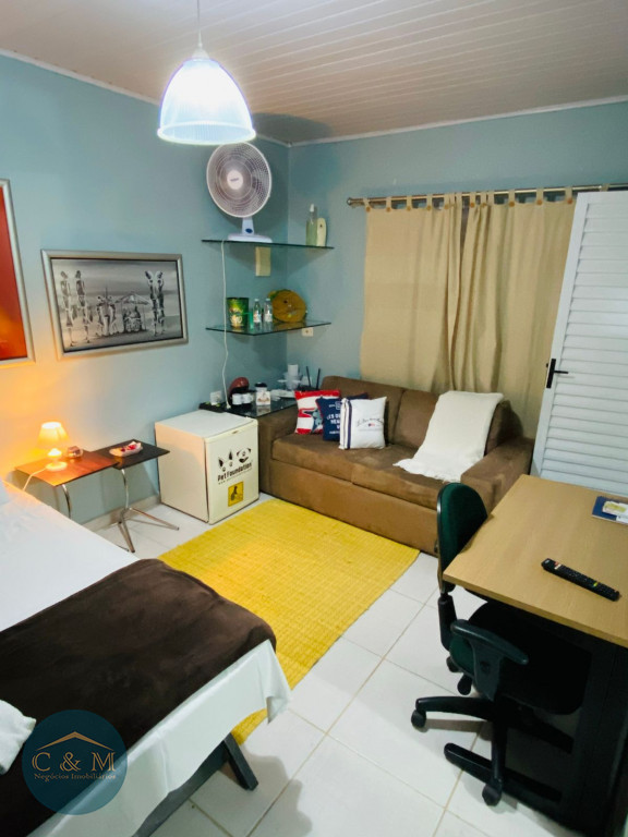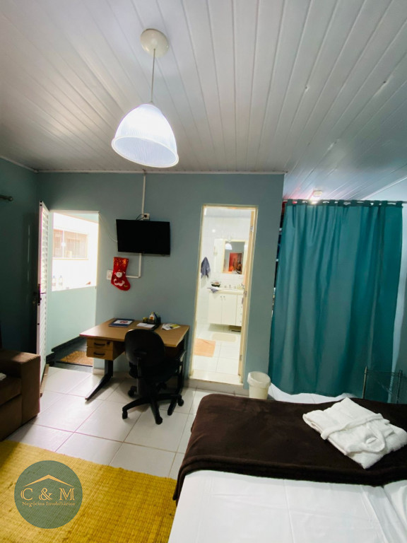 A edícula, ampla e versátil, pode funcionar como escritório profissional ou uma segunda residência completa: