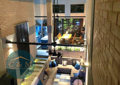 Construído sobre um terreno de 150m² com 230m² de área construída, o conjunto impressiona pelo acabamento impecável, pé-direito duplo e localização privilegiada.