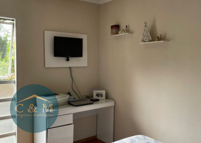 São 2 dormitórios, ambos com armários planejados, um banheiro espaçoso, recentemente reformado e equipado com box de vidro.