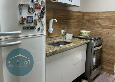 A cozinha planejada é funcional e moderna, integrada à área de serviço, otimizando o espaço e facilitando o dia a dia.