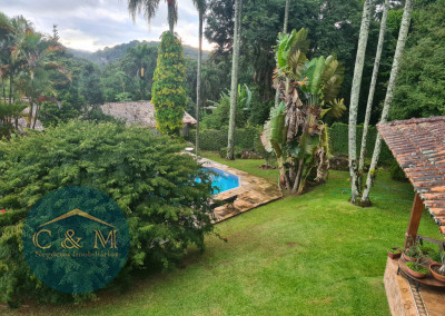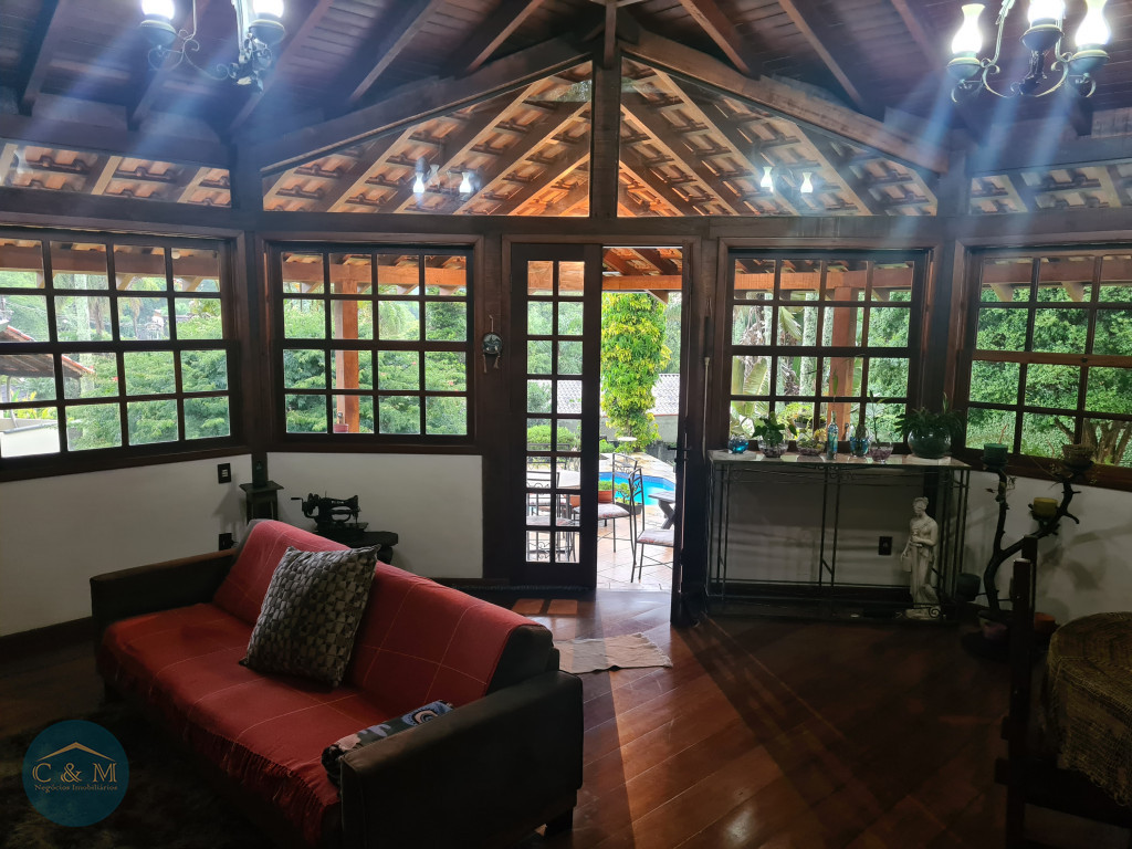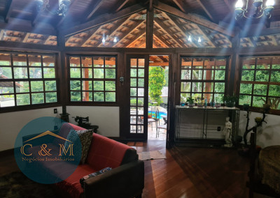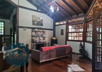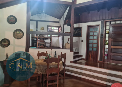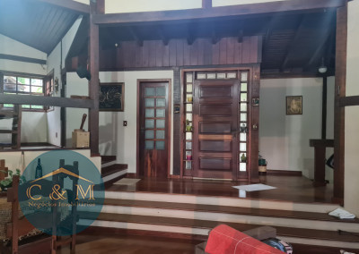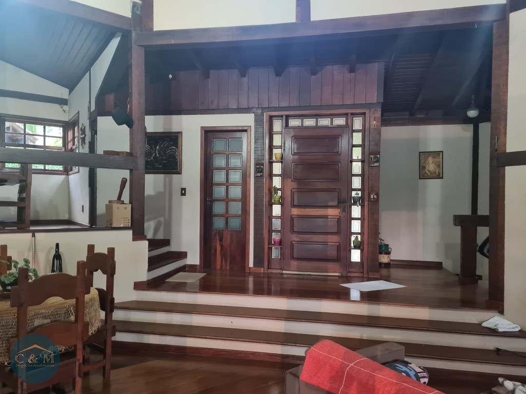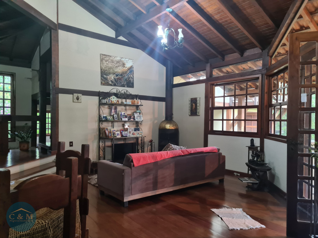 Sobrado impecável, arejado, rodeado de muito verde e privacidade. Estrutura de alvenaria convencional, vários detalhes de madeira tanto nas paredes como no piso e vidro dando um toque moderno e rústico ao ambiente.