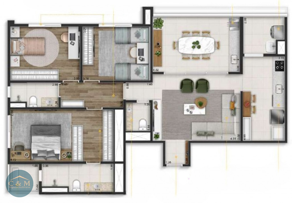 Apartamentos padrão 72 à 122m²