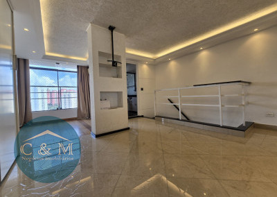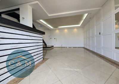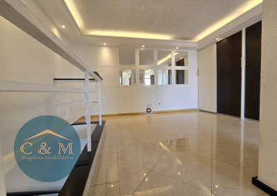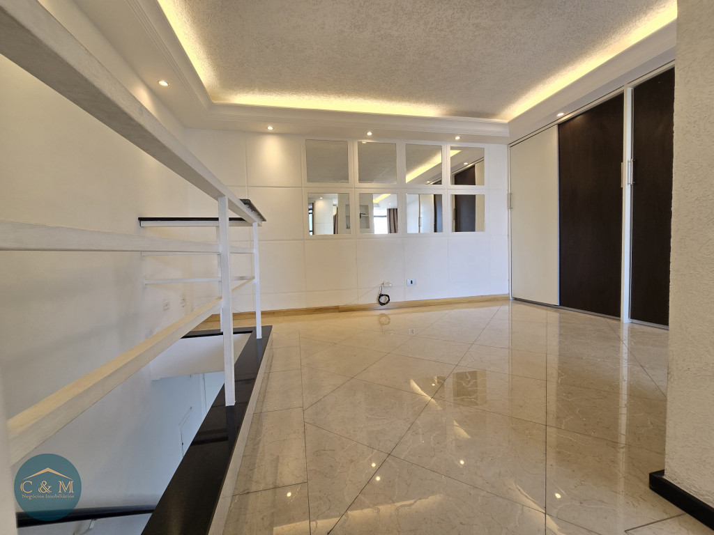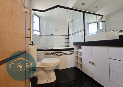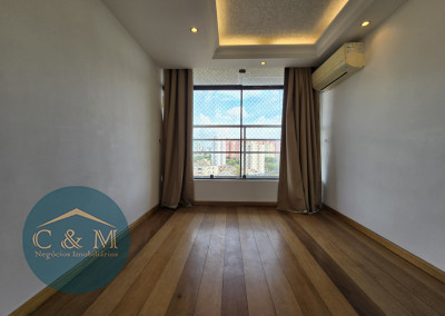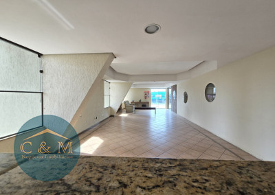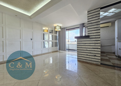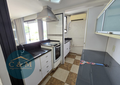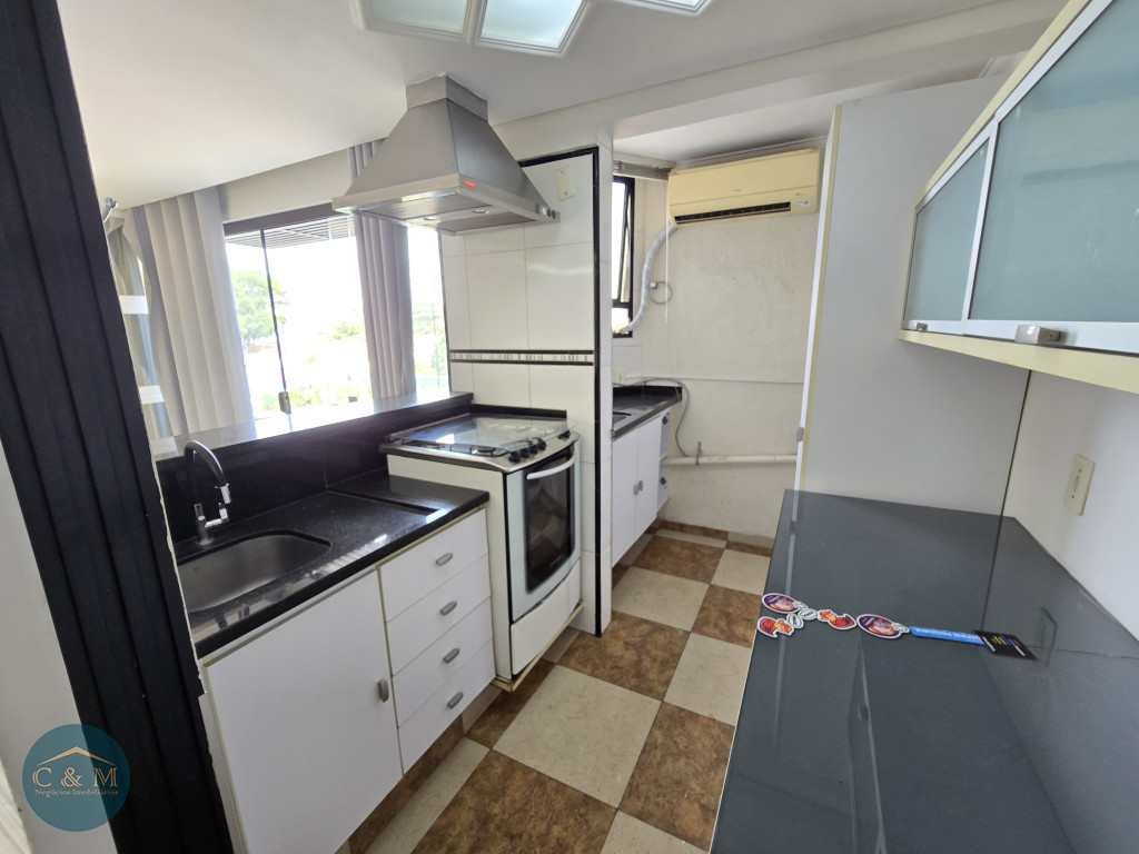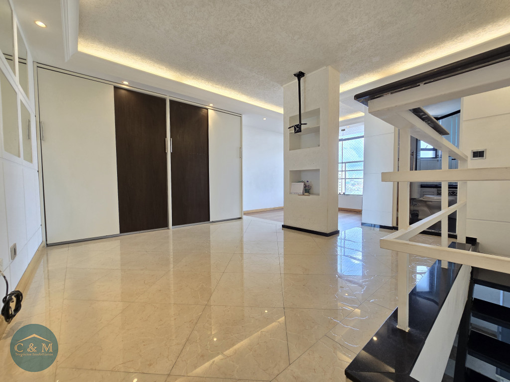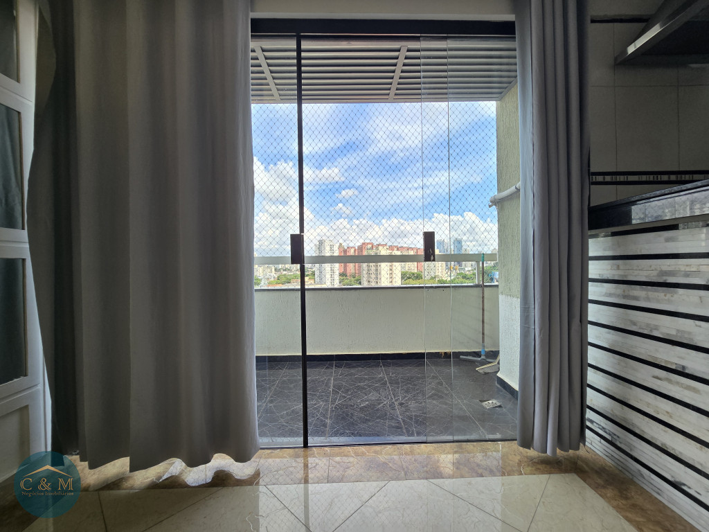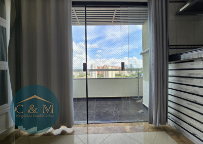 Parte debaixo: Sala ampla podendo distribuir em 2 ambientes, ar condicionado, varanda ampla com tela de proteção e vista livre, cozinha americana e área de serviço.