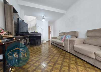 Sobrado de rua 161m² à venda distribuídos em 3 dormitórios sendo 1 suíte, sala 2 ambientes, lavabo, copa espaçosa, cozinha, área de serviço, corredor lateral, 1 cômodo grande podendo utilizar da forma que preferir, dormitório e banheiro de empregada. Conta com 2 vagas de garagem fechada, e 1 vaga na rampa coberta, ambos os portões por acionamento eletrônico. Laje sobre a dependência de serviço com vista livre linda e podendo ser transformada em área gourmet. Repleto de armários planejados, ambientes arejados e ensolarados.