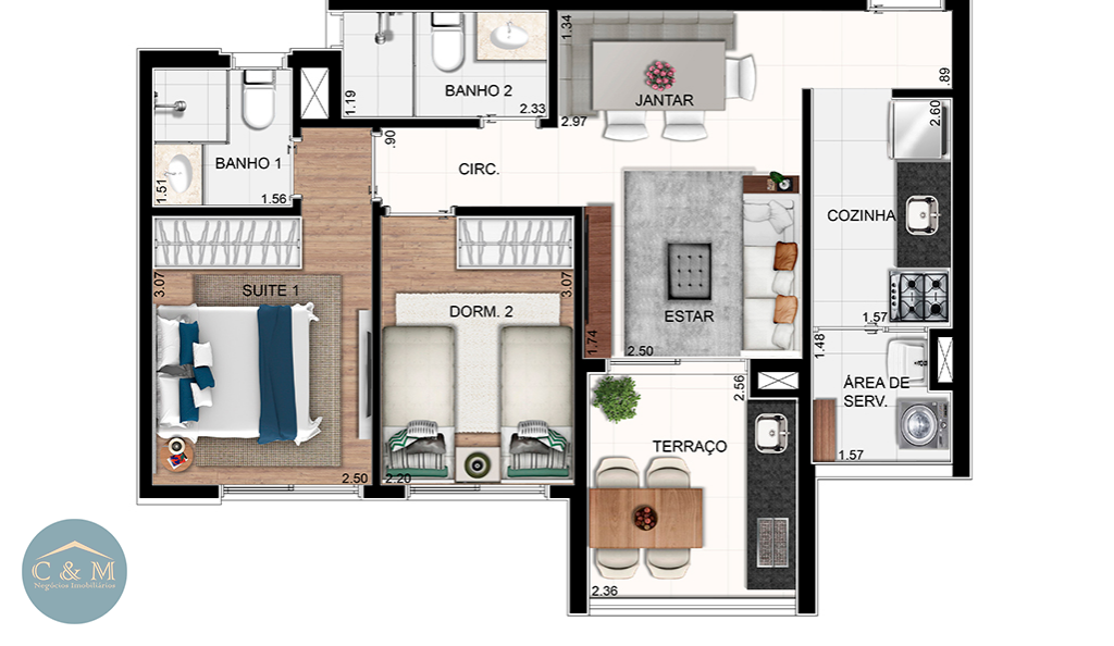 - Área útil: 56.00 m²