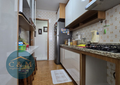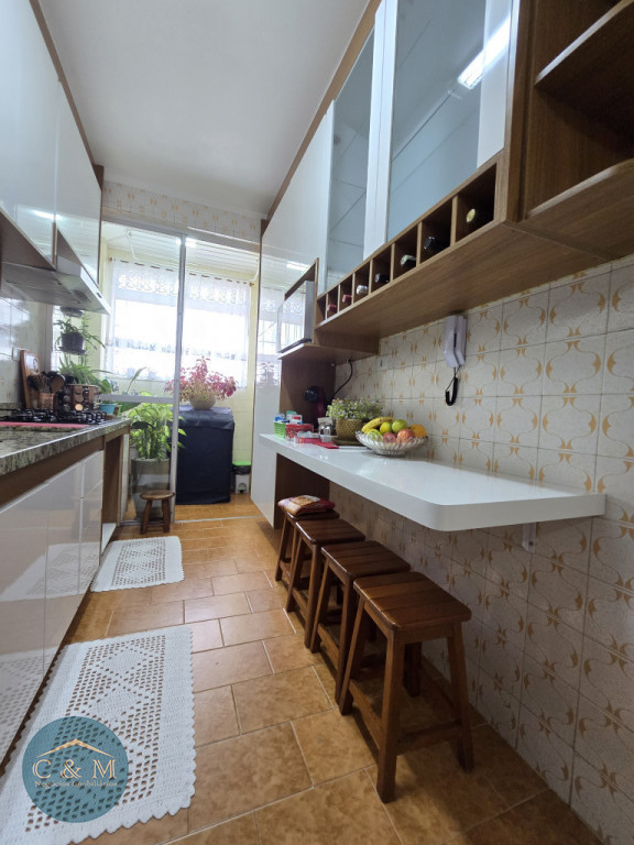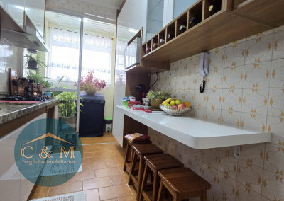 Apartamento 82m² à venda distribuídos em 2 suítes, sala 2 ambientes, corredor com estante, cozinha, área de serviço e despensa (banheiro de serviço transformado em despensa). Conta com 1 vaga de garagem fixa e coberta. Repleto de armários planejados de qualidade, lustres, cooktop, exaustor, espelho no quarto, chuveiros. Móveis soltos serão retirados. Ambientes arejados e ensolarados. Ambiente familiar e muito sossegado.
