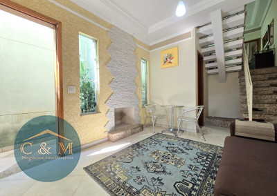 As três suítes sendo a principal com closet, banheiro com banheira de hidromassagem e varanda localizadas no andar superior, oferecem privacidade e conforto, são bem arejadas e iluminadas, conta também com um corredor espaçoso podendo fazer espaço home office. Possui 4 vagas de garagem, portão automático.